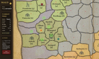 - To take over a territory, move to a territory, i.e. Saltvik [2], and hit "End Movement". You will collect tax from the territory each turn it is under your control. Saltvik provides 2 gold as tax.